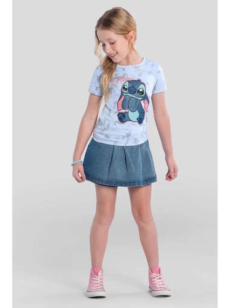 Blusa infantil menina tiedye do Stitch Brandili